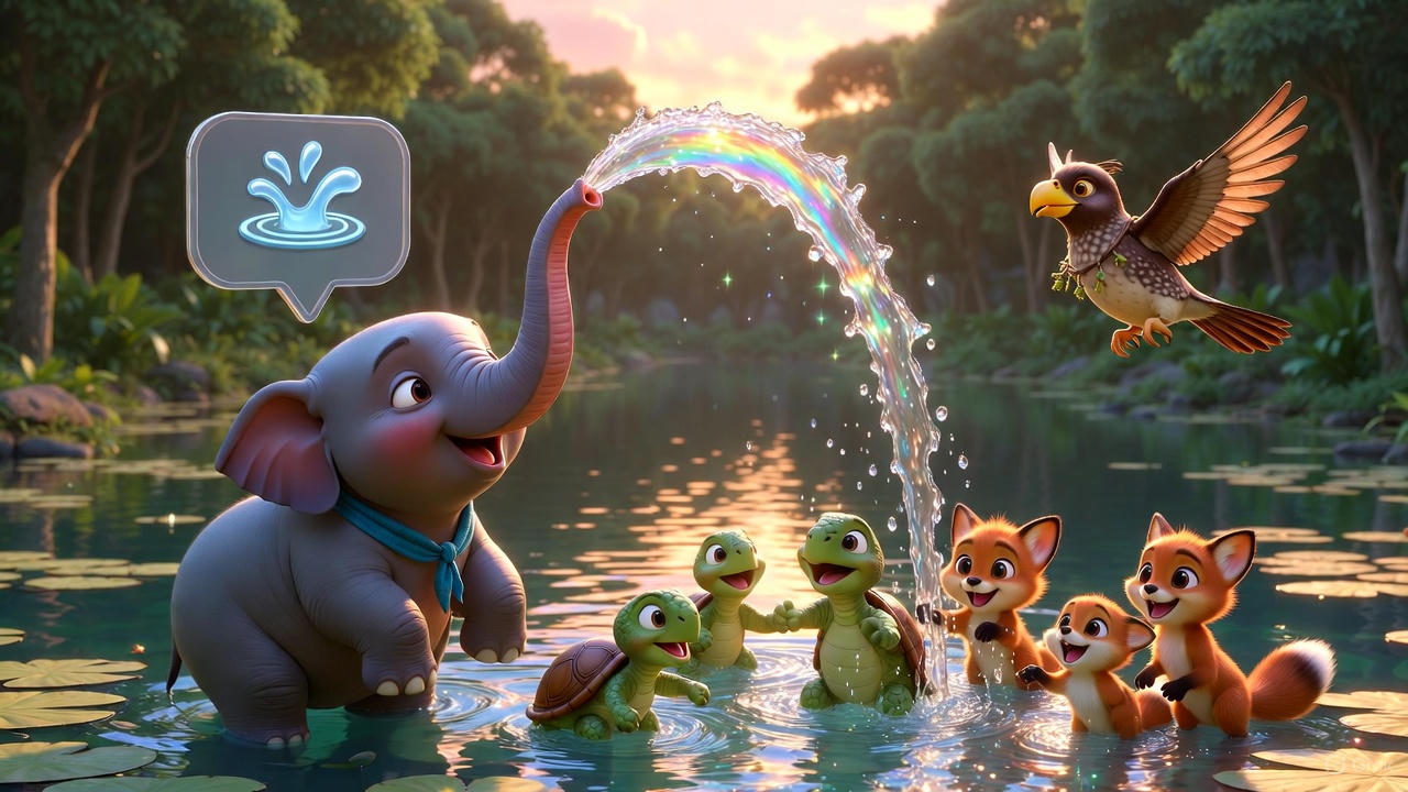 இதைக் கண் கூட்டாம பாத்துக்கிட்டு இருந்தது சின்னு யானை குயில் மேலும் சொல்லுச்சு அங்க பாரு நம்ம பிறந்தநாள் விழா நடக்கிற இடத்துக்கு பக்கத்திலேயே குளம் இருக்கு அதுல உன்னோட துதிக்கையை பயன்படுத்தி நடனமாட்ற குழந்தை மிருகங்கள் மேல தூவி விட்டேனா அவங்களும் உற்சாகமாகி நடனமாடு வாங்க இது தெரியாம நீ இப்படி சோகமா இருக்க நான் என்ன செய்யப் போறேன் தெரியல அப்படின்னு சொல்லிட்டு பறந்து போயிடுச்சு