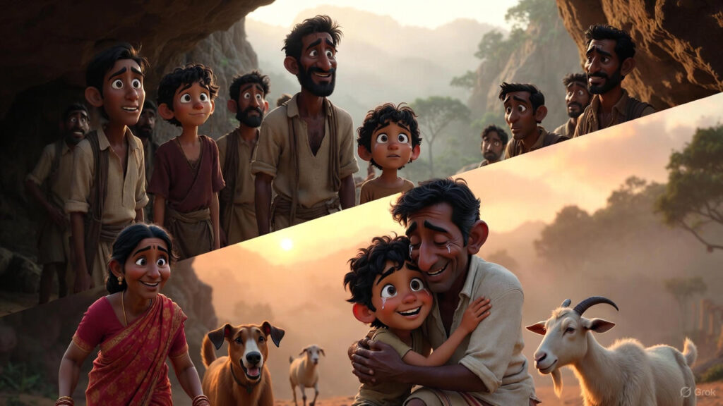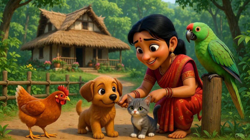 Home Sweet Home: The Wild Lesson of Gratitude-காட்டுக்குப் போன வீட்டு விலங்குகள்-காட்டுக்குப் பக்கத்துல இருக்கிற ஒரு சின்ன கிராமத்துல ஒரு அழகான ஒரு பெரிய குடிசை வீடு இருந்துச்சு அந்த வீட்டுல இருந்த குடும்பத்தினர் நிறைய வீட்டு விலங்குகளை வளர்த்துக்கிட்டு வந்தாங்க