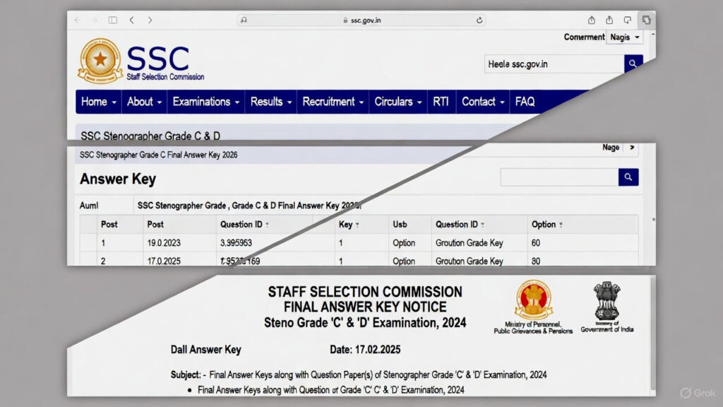 New Delhi, India – January 5, 2026 – The Staff Selection Commission (SSC) has officially released the SSC Stenographer Grade C and D Final Answer Key 2026 on January 2, 2026, along with candidates’ response sheets and individual marks for the Computer-Based Test (CBT) held from August 6 to 11, 2025. This update, accessible via login on ssc.gov.in until January 17, 2026 (6:00 PM), comes after the provisional key and objection window closed on August 29, 2025. With over 15 lakh applicants competing for 1,639 vacancies in ministries, departments, and CBI, the final key incorporates valid objections, setting the stage for skill tests starting February 2026.